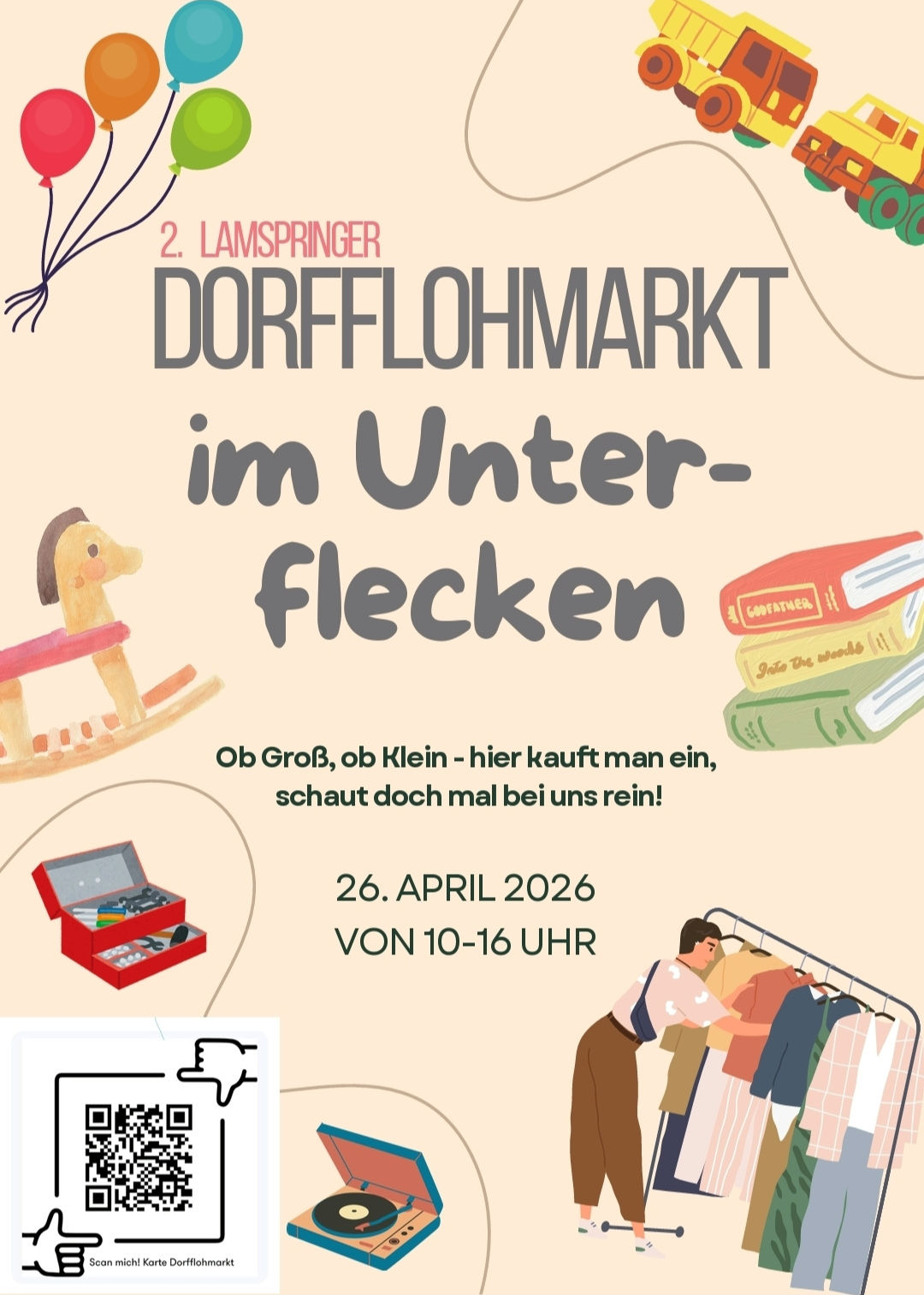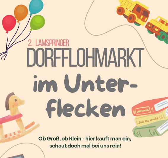 Nach dem großen Erfolg im vergangenen Jahr findet am Sonntag, 26. April 2026, wieder ein Dorf-Flohmarkt im Unterflecken Lamspringe statt. Von 10 bis 16 Uhr laden zahlreiche Anwohner zu privaten Flohmarktständen auf ihren Grundstücken ein.